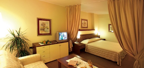 • Junior Suite: 45 sqm. double room with sitting area, telephone, free ADSL connection, satellite TV with SKY, safe, minibar, balcony, bathroom / shower, hairdryer, bathrobe. Ability to have additional sleeping room for two children.